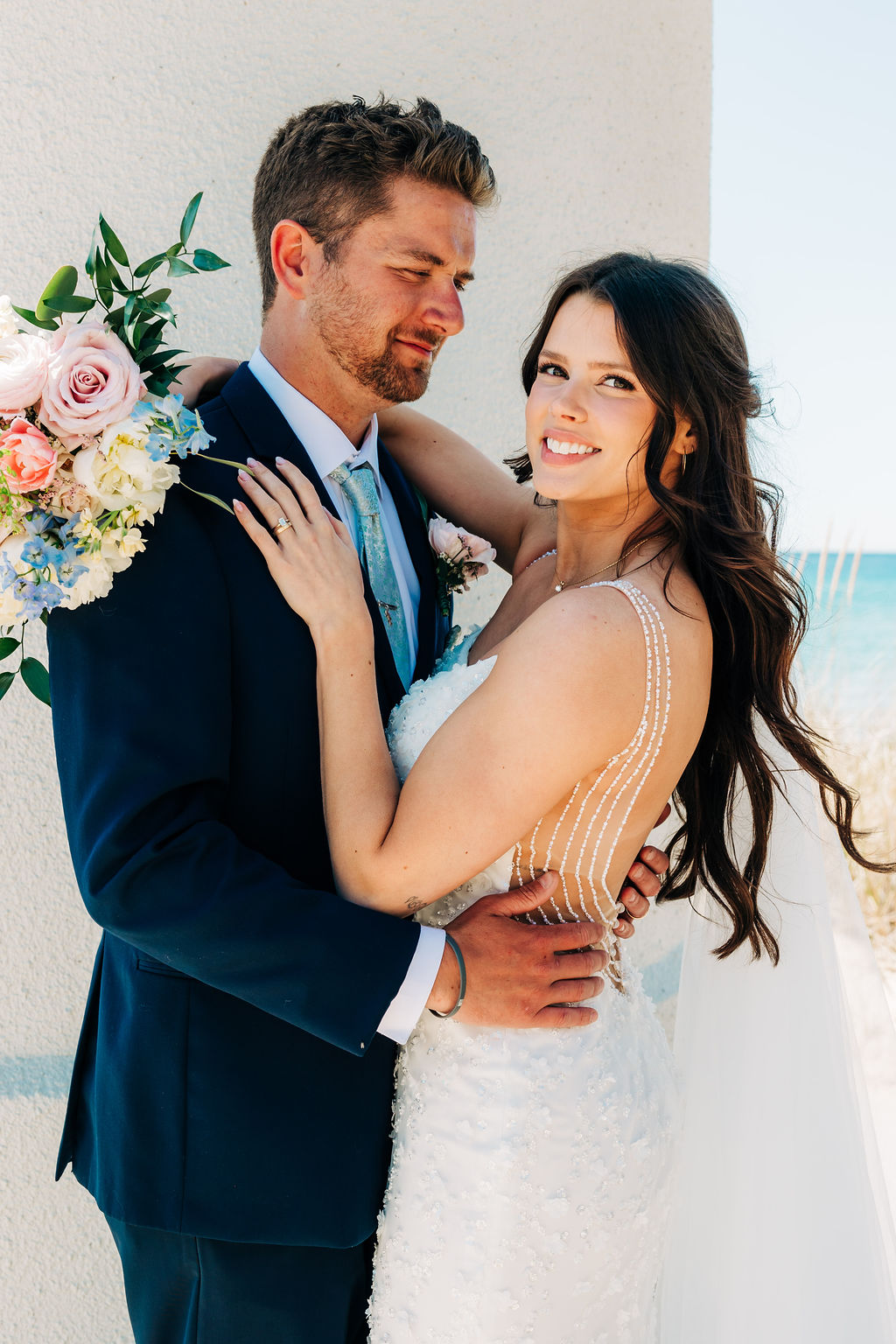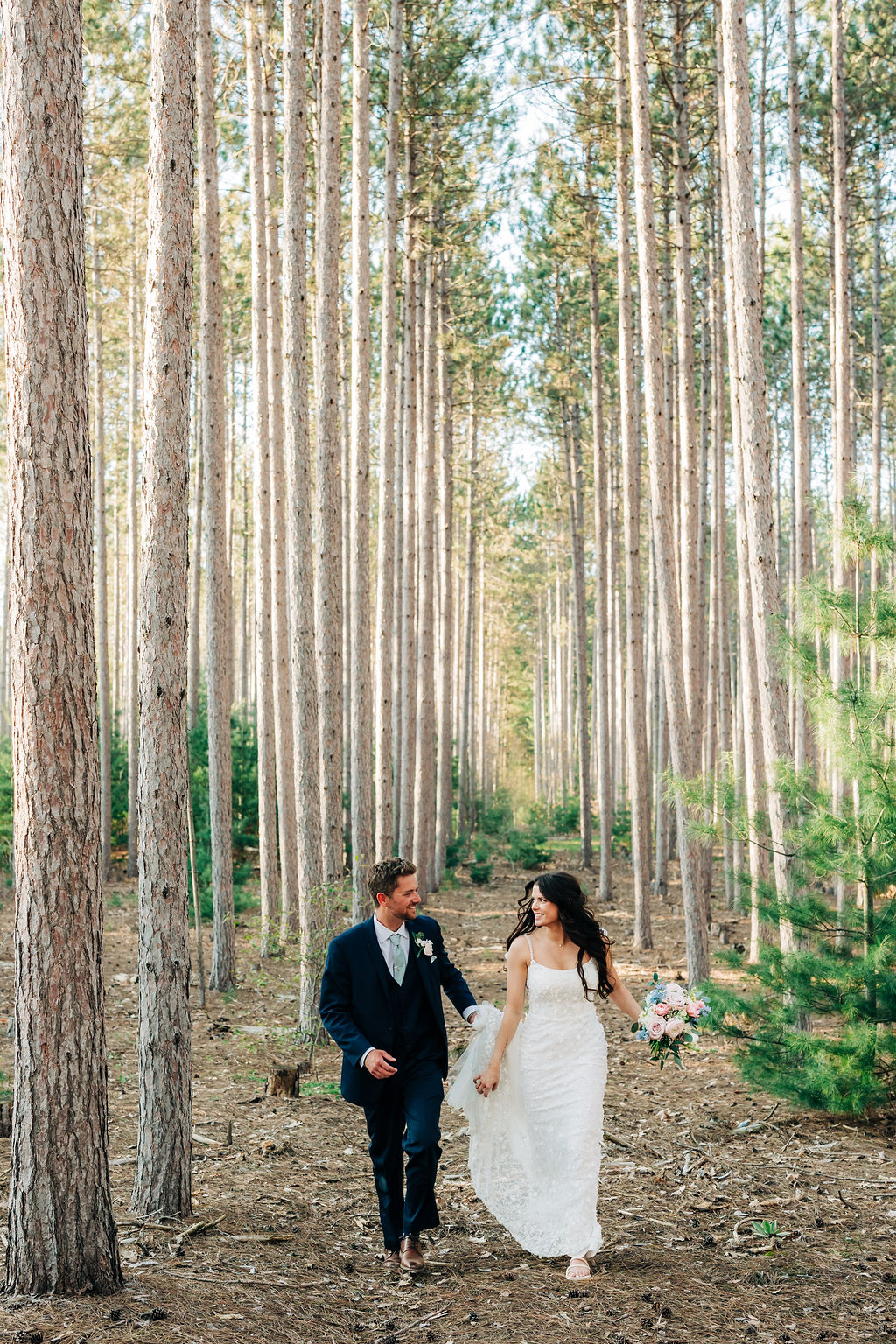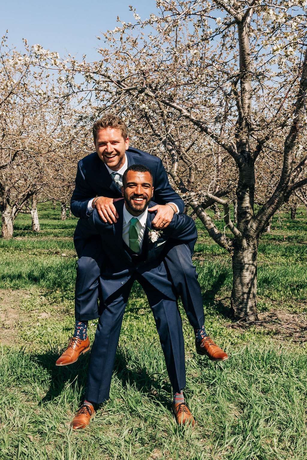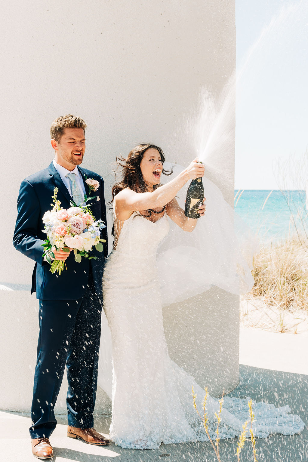 Back to their wedding day – we headed to Empire Beach for portraits post-ceremony to capture the breezy, beachy Northern Michigan vibe with big smiles. Later, I grabbed some more portraits amid the cherry blossoms near Rove at a private residence that we were granted use of, plus some fun shots of the bridal party.