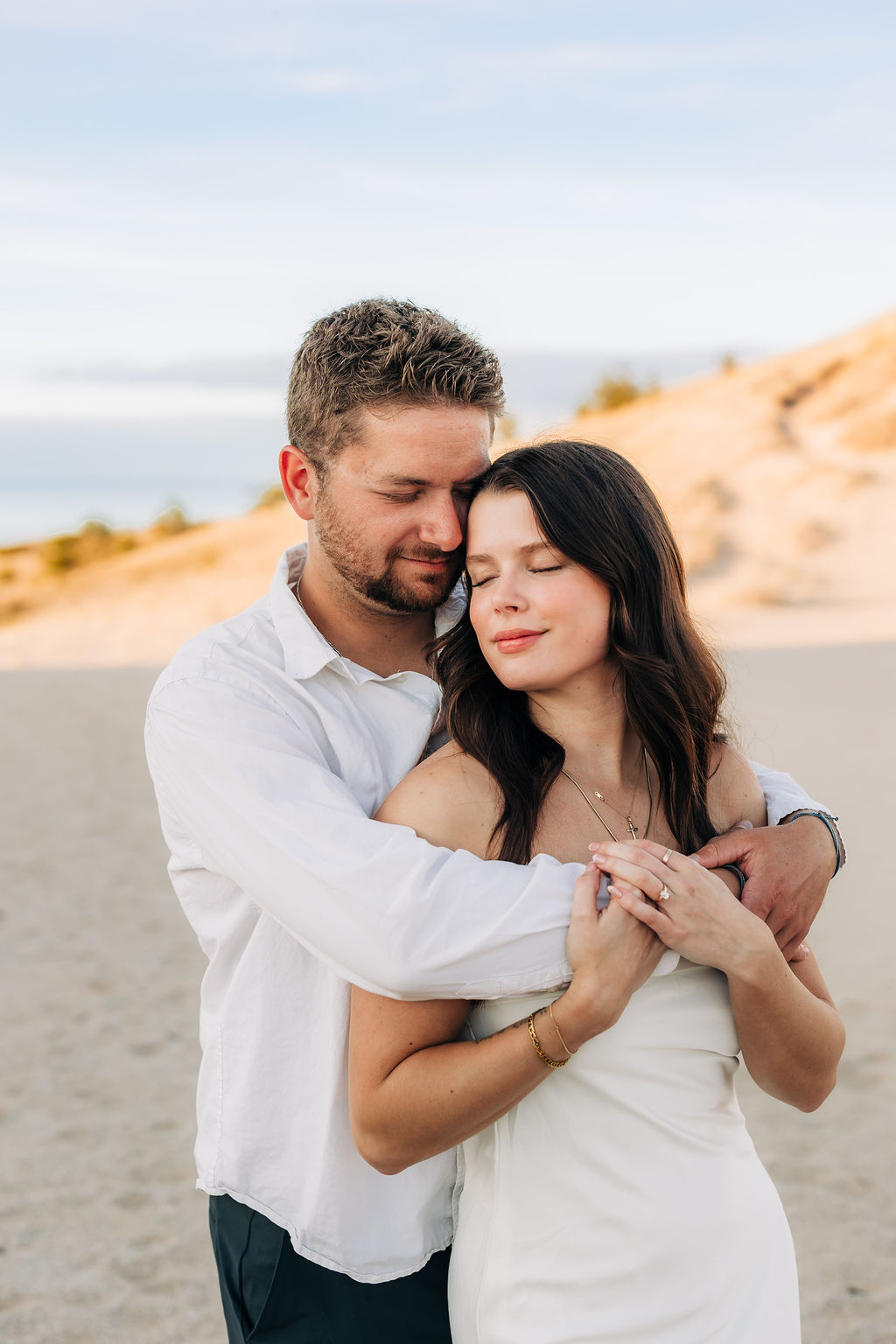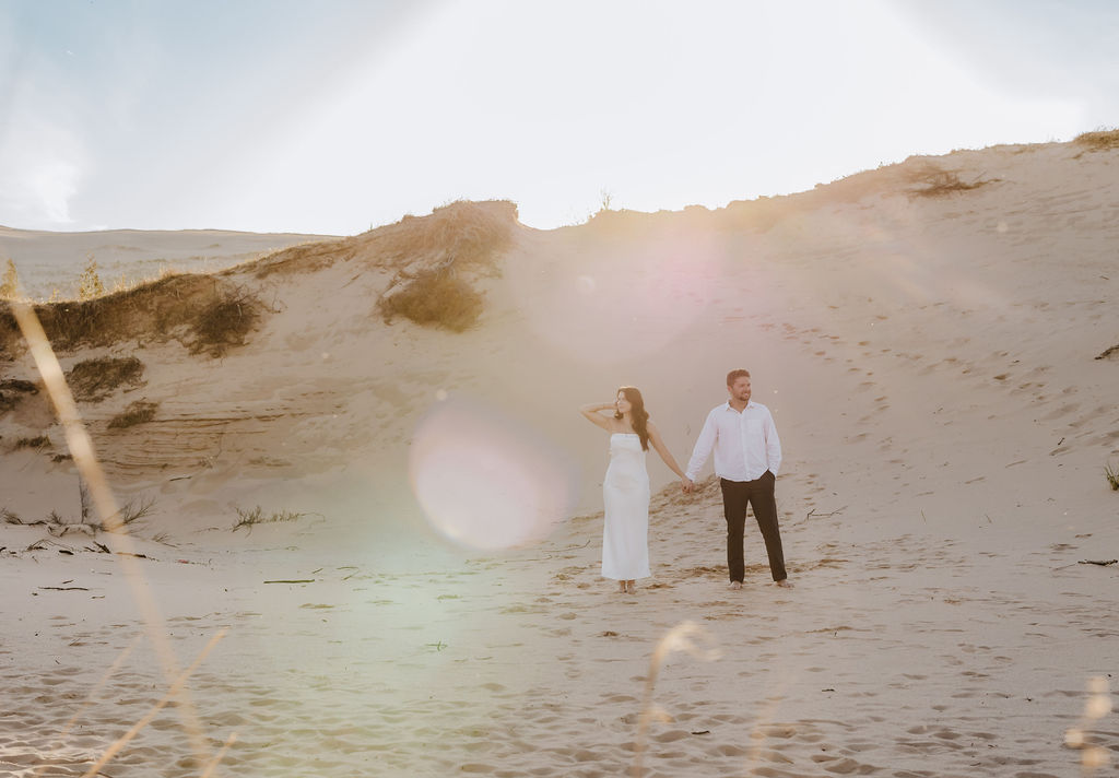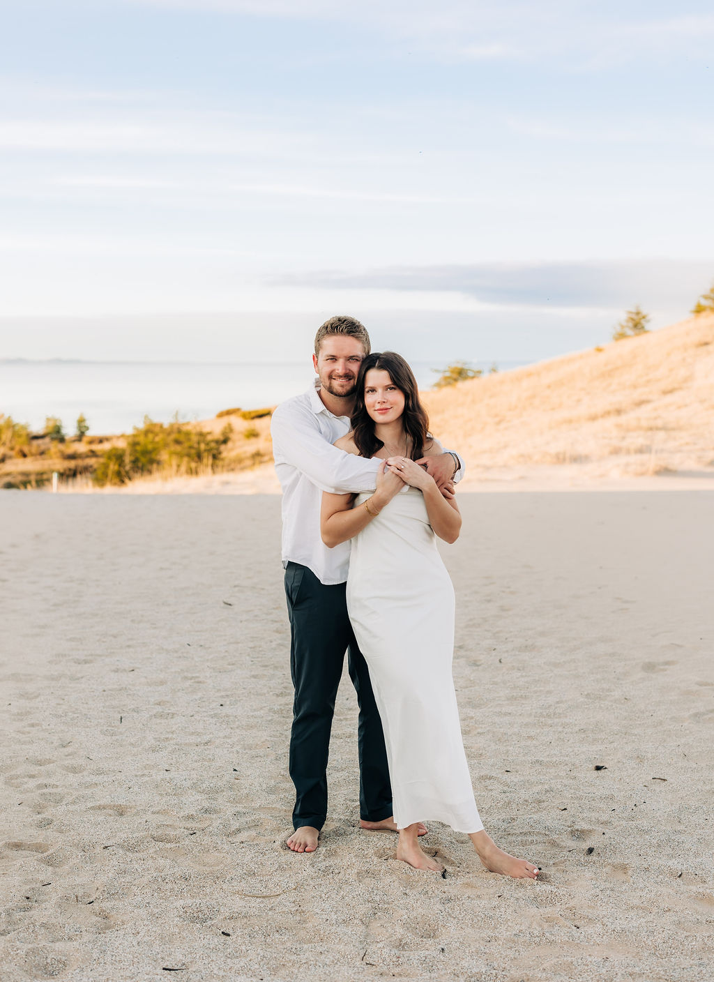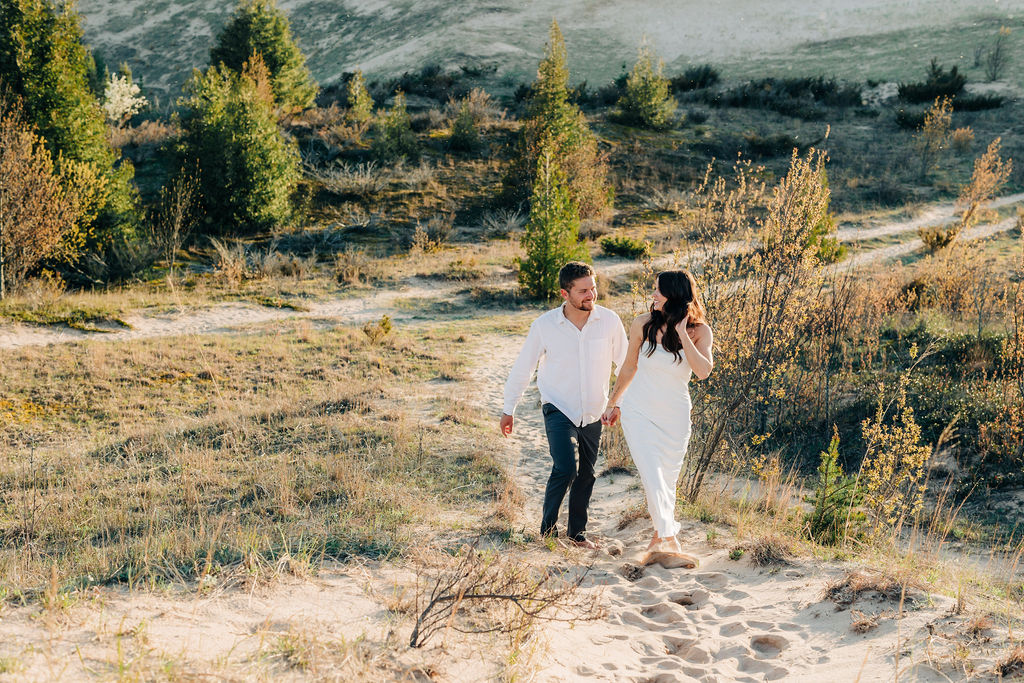 Months earlier, Rachel, Tom, and I met up at Sleeping Bear Point for their engagement session. The setting and their personalities really set the tone of the session with lots of soft light and laughter. It was the perfect warmup for their big day and was one of those sessions that shows how in love the two are.