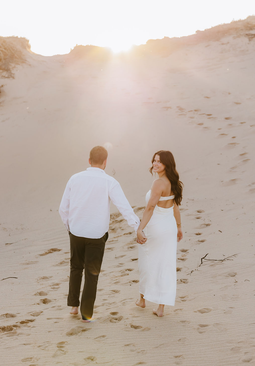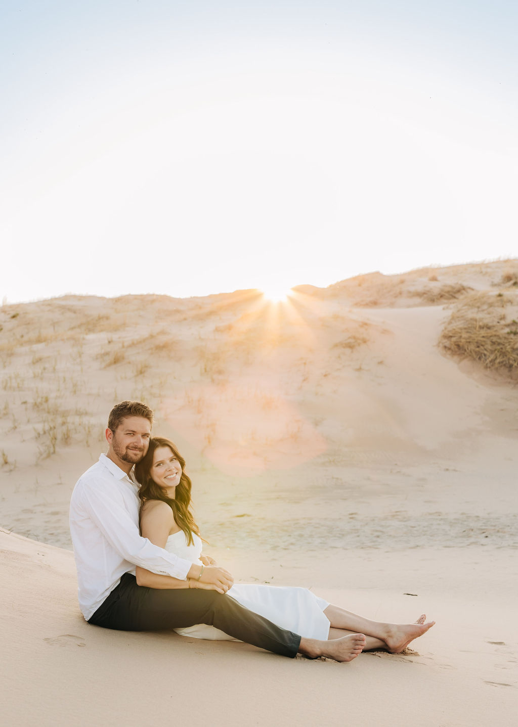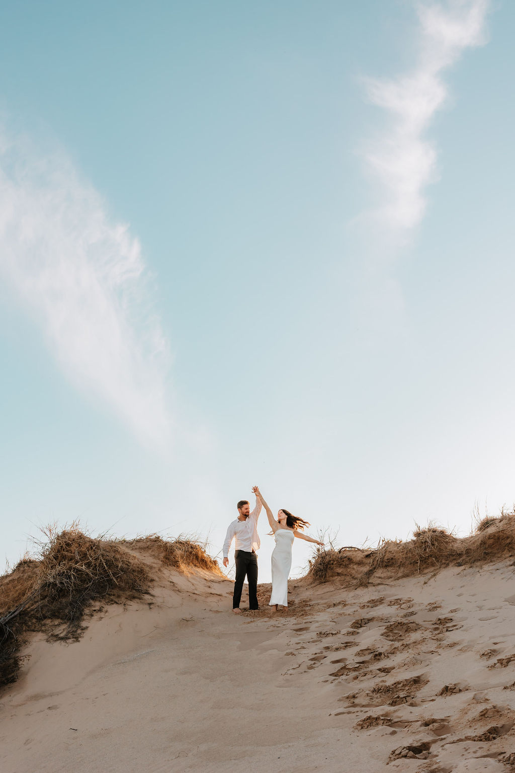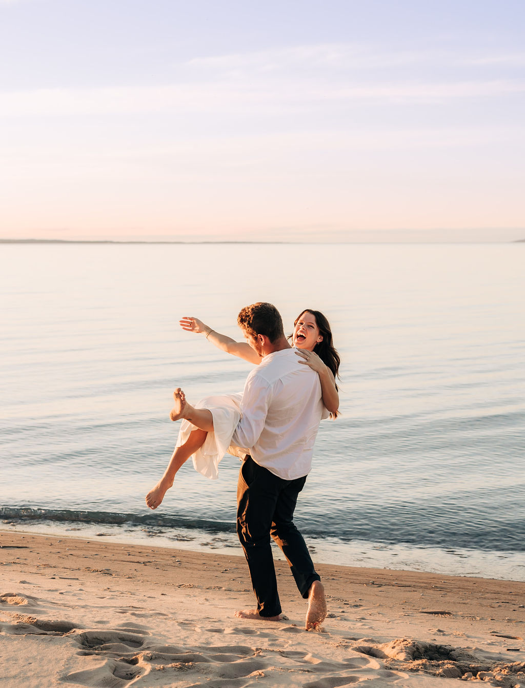 Months earlier, Rachel, Tom, and I met up at Sleeping Bear Point for their engagement session. The setting and their personalities really set the tone of the session with lots of soft light and laughter. It was the perfect warmup for their big day and was one of those sessions that shows how in love the two are.
