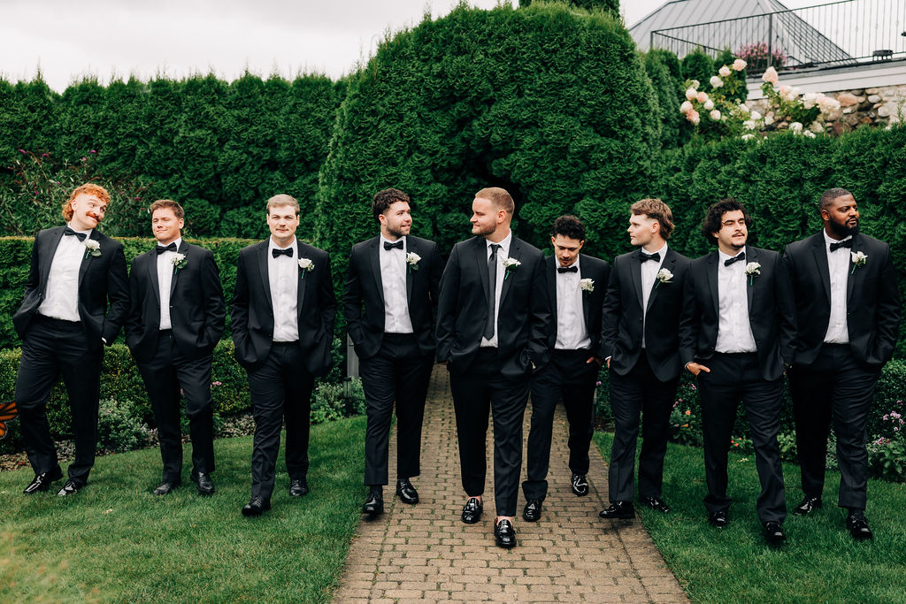 We kicked off the day with portraits of Sean and the groomsmen. Sharp suits, crisp details, and the best energy from the group to set the tone. As soon as the videographers and I wrapped up, the girls arrived with all the excitement you could ever hope for on a wedding morning.